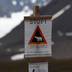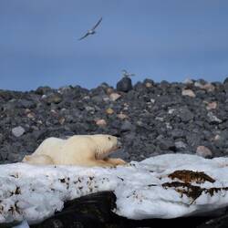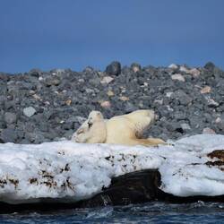 Der Polarbär, Ursus maritimus oder wie die Inuit sagen, Nanook - der große Wanderer ist eines von den größenen Tieren hier auf Svalbard, neben Walrossen, Polarfüchse und Rentieren. Männchen werden um die 500 bis 700 kg schwer, Weibchen 200 bis 400 kg. Gejagt wurden sie auf Spitzbergen bis 1973, seitdem sind sie geschützt. Weltweit soll es noch um die 20.000 bis 25.000 Eisbären geben, in Kanada und Grönland bejagt man sie weiterhin legal, 1000 Tiere pro Jahr. Früher hatte man sogar fallenartige Selbstschussanlagen gebaut, um die Bären zu töten.