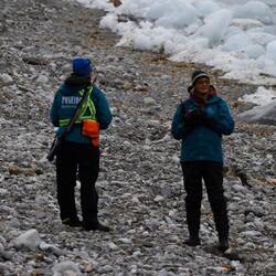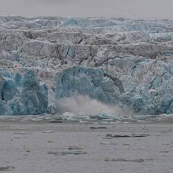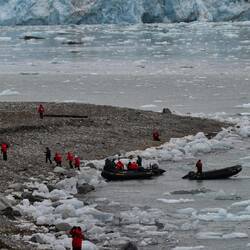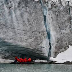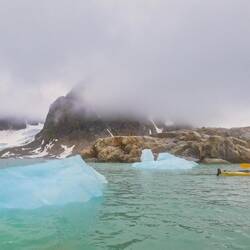 „Lets play with the icecubes”, war dann die Aufforderung Eloisas, mit den Kajaks in die treibenden Eisblöcke des kalbenden Gletscher zu paddeln. Was wir mit Elan auch taten, bevor wir zurück zum Schiff mussten. Der Zeit wegen im Tenderboot, denn es stand ja noch der Polarplunsch an. Bilder gibt es im folgenden Footprint.