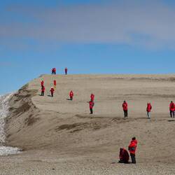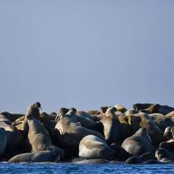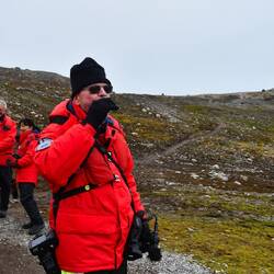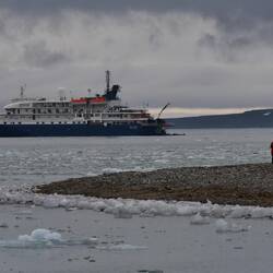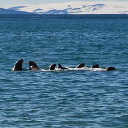 Abends fuhr das Schiff dann weiter gegen Norden, so dass wir den 80. Breitengrad gegen 21 Uhr überquerten. Hier gibt es eine flache Insel mit Walrosskolonien. Man darf aber nur bis 300 m heran, da es ein Naturschutzgebiet ist.Läs mer