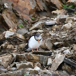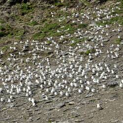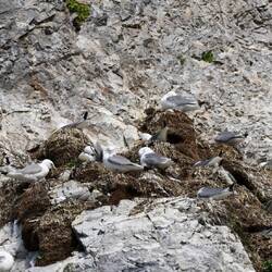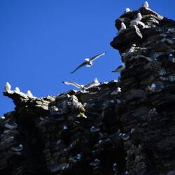 Einen Vogelfelsen in der Nähe muss man erklimmen. Eine anstrengende Tour, bei ungewöhnlichen 10 °C, den Abhang hinauf bis zum Fuß des Felsens. Dafür hat man dann aber auch die Vögel aus der Nähe und einen wunderbaren Blick ins Tal.Läs mer