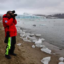 Bei einem Landgang eruieren die Guides aus Sicherheitsgründen als Allererstes, ob das Gelände weiträumig auch Eisbärenfrei ist. Herrscht Nebel und damit keine gute Sicht, gibt es keine Anlandung. Oder wenn Eisbären gesichtet werden. Scheint alles in Ordnung, sichern sieben oder acht Mitglieder der Expeditionscrew mit Signalwaffe und Gewehr das ganze Gelände an strategischen Punkten ab und überwachen das Areal kontinuierlich mit Ferngläsern. Auch das Meer wird mit Zodiacs überwacht. Bei Wanderungen wird ebenfalls erst das Gelände gesichert und die kleineren Gruppen müssen zusammenbleiben und werden von zwei bewaffneten Guides begleitet. Dennoch gab es auch auf Spitzbergen schon Todesfälle im Zusammenhang mit Eisbären, etwa vor zwei Jahren auf dem Campingplatz in Longyearbyen. Ist aber überaus selten. Muss ein Eisbär erschossen werden, zieht das lange und unangenehme polizeiliche Ermittlungen nach sich.Läs mer