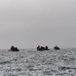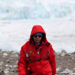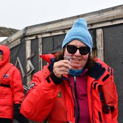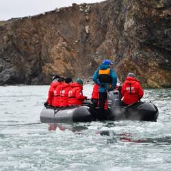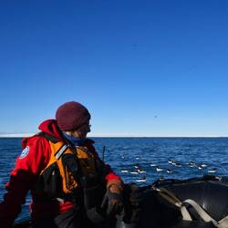 Der Polarplunsch, sprich ein Sprung ins etwa 1° C warme Eismeer vom Zodiak aus. Das ist Tradition und gehört dazu, besonders für die sechs Kajaker. 14 wagten den Sprung ins eisige Wasser. So auch ich. Damit bin ich jetzt in der Antarktis und in der Arktis geschwommen und war auch in beiden Regionen mit dem Kajak unterwegs. So viele gibt es nicht, die das schafften.Läs mer