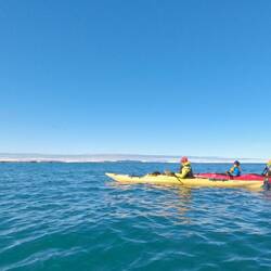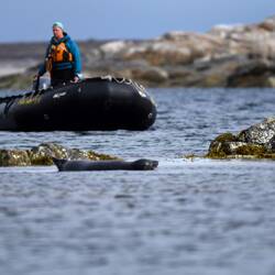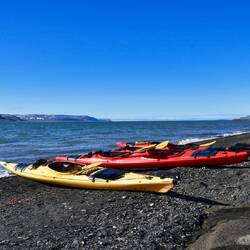 Anschließend landeten wir mit den Kajaks noch an, um kurz die Kolonie von Land aus zusehen, bevor es die drei Kilometer über offene See zum Schiff zurückging.Läs mer