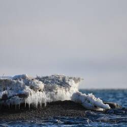 Kapp Waldburg war unser nächstes Ziel. Es ging wieder mit dem Kajak raus, die Küste entlang. Hier herrschte ein etwas höherer Wellengang, zum Teil mussten wir gegen eine stärkere Strömung ankämpfen. Und ja, es ist Salzwasser. Das schmecke ich. Das Kajak tauchte in den Wellen unter, die Gischt spritzte manchmal ins Gesicht. Macht Spaß. Besonders die Anlandung, man surft kurz die Wellenkämme entlang, dann hieß es Full Speed um auf dem Kiesbett anzulanden.