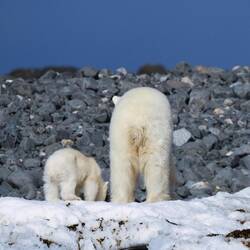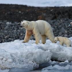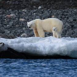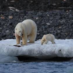 Es ist schon etwas Besonderes, Eisbären in der freien Natur zu beobachten. Wir hatten schon am dritten Tag das Glück, gleich eine Mama mit zwei Jungen zu beobachten - aus der Ferne vom Schiff aus. Am fünften Tag dann noch einmal eine Begegnung mit drei Tieren bei Sonnenschein auf dem Eis und aus der Nähe. Ein weibliches Tier mit Nachwuchs und ein einzelner Eisbär. Über zwei Stunden lang ließen sie sich studieren, kamen uns sogar bis an das Ufer entgegen, so dass nur 100 m zwischen uns lagen. Traumhaft.