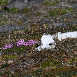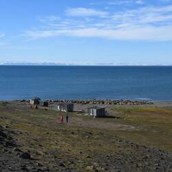 Rund drei Stunden später konnten wir an Kapp Lee anlanden. Seit rund 1600 diente dieser Platz als Schlachthaus. Hier wurden bald 400 Jahre unzählige Eisbären, Walrosse und Rentiere ausgenommen. Noch heute liegen unzählige Knochen herum. Von den alten Hütten finden sich noch Fundamente. Einige Trapperhütten aus dem 19. Jahrhundert stehen noch. Zudem finden sich alte Gräber von Walrossjägern.