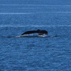 Auf dem Weg zum nächsten Stopp zeigte sich in einer Bucht auch ein Buckelwal. Zwar aus einiger Entfernung, aber immerhin. Für einige gute Aufnahmen der hinteren Flosse beim Abtauchen reichte es.Läs mer