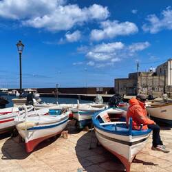 Heute zeichnet sich die kalabrische Stadt, sie liegt direkt an der Meerenge von Messina mit Blick auf Sizilien, vor allen durch den 600 m langen Sandstrand, das auf einem großen Felsen - der ehemaligen Behausung Skyllas liegende Castello Ruffo und das alte Fischerviertel aus. Hier stehen die Häuser direkt am Wasser, sodass die Fischer ihre Boote quasi am Haus festmachen können. In dem beschaulichen 5000-Seelen-Ort spielt der Fischfang besonders von Schwertfisch auch heute noch eine wichtige Rolle, die Stadt ist noch immer sehr vom Fischfang geprägt ist. Dennoch spielt der Tourismus langsam eine immer wichtigere Rolle. Auf den bereitet man sich gerade vor, so werden am Strand einige größere - ich denke temporäre Holzbauten errichtet, an vielen Stellen wird gehämmert, gebohrt und gebaut. Vieles hat derzeit noch geschlossen, so dass wir eine Zeit lang die Stadt abklappern müssen, um für Abends ein offenes Restaurant zu finden.Read more