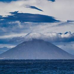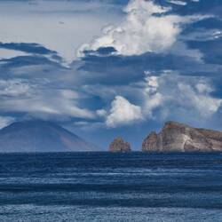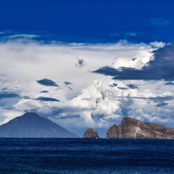 Doch es kommt anders. Schon die etwa 45-minütige Überfahrt nach Panarea ist Anfangs in Küstennähe recht ruhig, wird dann aber etwas holprig, das offene Meer ist uns nicht gnädig gestimmt. Nach dem Landgang und einer 30-minütigen Fahrt Richtung Stromboli dreht der Kapitän dann um. Zu gefährlich und ein Treiben lassen am Vulkan wäre bei diesem Wellengang nicht möglich. Meterhohe Wellen sorgen für den rasantesten Höllenritt, den wir jemals auf offener See gemacht haben. Mit maximalem Speed geht es quer zu den Wellen zurück, inzwischen findet sich kaum mehr jemand, der nicht eine oder mehrere Spuktüten in der Hand hat. Eigentlich hätte die Crew die Entscheidung schon in Panarea treffen müssen, bei diesem Wellengang wäre ein Aufenthalt an der Nordflanke absehbar nicht möglich gewesen. Zumal schon das Anlegen am Kai selbst die Crew vor nicht geringe Probleme stellte. Das Resümee des Tages: Die Lava lässt auf uns warten, der Stromboli sowieso und Geld dafür bezahlt, dass einem schlecht wird. Aber ansonsten sind die Inseln hier wirklich schön. Morgen geht es mit einem kleinen Boot zur Insel Vulcano, nur wir zwei. Schauen wir mal. Hoch darf man aber nicht, derzeit zu gefährlich giftiger Gase wegen. Deswegen nur Bilder von der Abfahrt im Hafen - da sieht es noch recht beschaulich aus – und von Panarea. Die Wolkenformationen über dem Meer hier sind aber schon beeindruckend – und bedrohlich. Und ab einem gewissen Zeitpunkt war fotografieren nicht mehr möglich.Read more