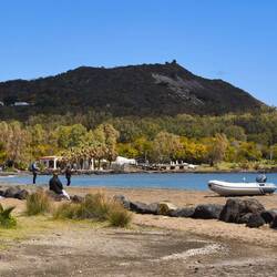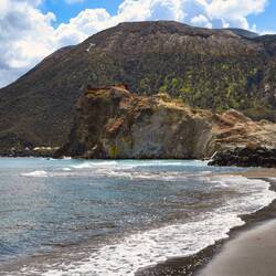 Als wir ankommen ist nur wenig auf Vulcano los, auf der gesamten Insel leben nur etwa 550 Menschen. Zurzeit ist nahezu alles noch geschlossen, an vielen Stellen wird gebaut und renoviert für die kommende Saison. Generell sind die Liparischen Inseln vom Massentourismus verschont, gibt es doch auf keiner der sieben größeren Inseln einen Flughafen. Also ist das Herkommen aufwändiger, per Flug etwa nach Catania, per Bus oder Taxi dann 160 km nach Milazzo und weiter geht es mit der Fähre. Das schützt vor überbordenden Touristenströmen auch in der Saison. Dennoch dürften im Sommer die schönen, schwarzen Sandstrände gut besucht sein.