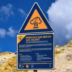 Erst seit dem 17. Jh. ist Vulcano besiedelt, vorher hat man die Insel wegen den Vulkanausbrüchen gemieden. Der letzte größere fand 1888 statt. Die Bewohner konnten sich damals auf Schiffe retten, Strafgefangene jedoch, die in den Schwefelminen arbeiten mussten, kamen ums Leben. Der Ausbruch dauerte bis März 1890 und hatte einen teilweise explosiven Charakter. Noch heute stellt der Vulkan eine Bedrohung dar, das sieht man überall auf der Insel in Form von Hinweisschildern, die Evakuierungsrouten vorgeben. Zudem findet sich am anderen Ende der Insel ein kleiner Notfallhafen. Die Menschen leben hier schon sehr nah am Krater. Auch deshalb überwacht man die Insel an zahlreichen Stellen, um einen Ausbruch rechtzeitig vorherzusagen und die Bewohner und Besucher evakuieren zu können. Dass irgendwann ein größerer Ausbruch bevorsteht, ist Vulkanologen ziemlich klar. Man weiß nur nicht wann.