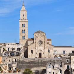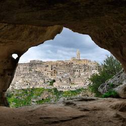 Der historische Teil besteht aus zwei Stadtvierteln Sasso Barisano und Sasso Caveoso. Die Höhlensiedlungen hier sind ein außergewöhnliches Beispiel im mediterranen Raum. Besiedelt ist das Gebiet bereits seit der Jungsteinzeit, Matera gilt als einer der ältesten besiedelten Orte der Welt. Die Lebensbedingungen waren hier einst gut. Es gab einen Fluss, fruchtbares Land und leicht zu bearbeitendes Baumaterial. Zudem hatte man später ein sehr gutes Lagersystem in den Grotten eingerichtet, mit Vorräten an Getreide, Hülsenfrüchte, Wein und Olivenöl.