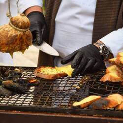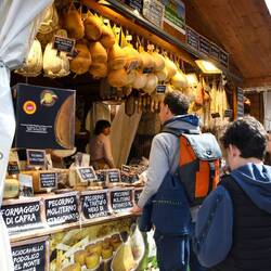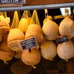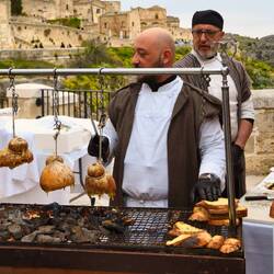 Eine der regionalen Spezialitäten konnte ich abends dann auch probieren: Caciocavallo, ein typischer Käse, entfernter Verwandter des Mozzarello. Dessen Form erinnert an eine erwürgte Birne, mit einem Seil um einen kleinen Kopf, an dem der Käse paarweise aufgehängt heranreift. Er schmeckt aromatisch, ist gereift pikant und würzig. Man nimmt ihn etwa für Pasta, als Schnittkäse, zum Kochen und Braten zusammen mit Olivenöl und Gewürzen. Ich aß ihn traditionell über einem Feuer geschmolzen und auf ein geröstetes Brot gestrichen. Schmeckt vorzüglich. Davon kommt natürlich etwas (zwei Kilogramm wiegt einer) mit nach Deutschland.Read more