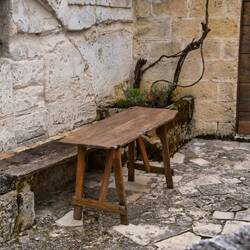 Also entschied die Regierung, in den 1950er und 60er Jahren die Menschen in neu gebaute Wohnblocks umzusiedeln. Quasi eine Zwangsumsiedlung von dem Ort, an dem sie und ihre Vorfahren seit Jahrhunderten lebten. Was viele nicht wollten, kannten nichts anderes. Die Räumung dauerte rund zwei Jahrzehnte, so erzählt uns der Guide. Noch Anfang der 90er-Jahre gab es vereinzelt Schafhirten, die hier lebten. Und die umgesiedelten Menschen, die saßen weiterhin bettelarm in den Sozialwohnungen mit fließend Wasser, hatten aber den sozialen Halt, ihre Freunde, die Nachbarschaft verloren. Die Höhenwohnungen standen leer und verfielen. Ab und an gab es Initiativen, diesen Zustand zu ändern, Nur, es tat sich nichts. Bis die Unesco kam, die 1993 die Besonderheiten dieser Stadt erkannte, sie zum Weltkulturerbe machte und die Italiener überzeugen konnte, Geld in die Restaurierung zu investieren. Aber auch dann geschah wenig. Erst als Mel Gibson die Stadt 2004 als Drehort für seinen Film über die Passion Christi erwählte, bekam Matera unerwarteten Zulauf. Vor etwa 15 Jahren begannen die Restaurierungen dann so richtig, seit fünf Jahren ist Matera in der Reisebranche etwas bekannter und wird vermehrt von Touristen besucht. Die einzige Chance, wie der Guide explizit betont, dass die Menschen von Matera eine Zukunft bekommen, die sie Jahrhunderte nicht hatten. Es gelte nur, die richtige Dosis zu bewahren. Jedenfalls ist die Sassi von Matera ein regelrechtes Museumsdorf, in dem wieder Menschen leben. Nicht wenige Höhlen und Gebäude wurden und werden zu B&Bs umgebaut, Hotels entstanden und zahlreiche Restaurants, Bars, Cafés, ergänzt durch Souvenirshops und viele Ateliers mit Produkten aus der Region etwa aus dem Tuffstein bis hin zu mehreren Museen. In einem kann man sehen, wie eine derartige Höhle eingerichtet war, von einer bessergestellten ärmeren Familie. Und es wird immer noch viel gebaut und restauriert. Viele der Plätze, Treppen, Wege und Straßen sind erst wenige Jahre alt, fügen sich aber wunderbar ins Stadtbild ein, so dass man meint, sie wären deutlich älter.