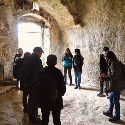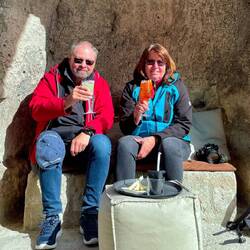 Wir haben für heute Morgen eine Führung gebucht, die uns das Leben und die Geschichte des Ortes etwas näherbringt. Die hat es in sich. Kurz zusammenfasst und die Jungsteinzeit, die Römer, Byzantiner, Franken und weitere mal weggelassen, sprich etwa 8000 bis 10.000 Jahre, hatte sich das Leben hier seit Jahrhunderten, seit dem frühen Mittelalter kaum verändert: Die Arbeiter und Armen lebten in den Höhlen, die reicheren Menschen in der Oberstadt in Häusern. Deren Gebäude waren zu den Armen hin schlicht und nur einfaches Mauerwerk, zu der anderen Seite hin mit Fresken und Brüstungen verziert.