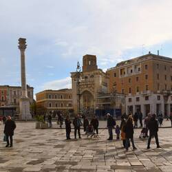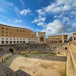 Die Altstadt ist von einer Ringmauer mit vier Toren umgeben. In ihr finden sich zahlreiche wunderbare barocke Gebäude, bestehend aus dem im Umland abgebauten sogenannten Kalkarenit, einem weichen Sandstein. Wegen des der Stadt eigenen barocco leccese wurde Lecce auch das Florenz des Rokokko genannt. An Sehenswürdigkeiten findet sich hier im Zentrum viel: Etwa das Kastell Karls V. aus dem 16. Jahrhundert - bereits seit Jahren wegen Renovierungsarbeiten geschlossen, oder die wegen ihrer Fassade berühmte Basilika Santa Croce, viele wunderschöne Kirchen und ein großer Dom - was mussten die Menschen damals für diese kirchliche Pracht bluten, weiter lohnen mehrere Museen, zahlreiche Piazzas, ein römisches Amphitheater mitten in der Altstadt und vieles mehr einen Besuch. Zu viel für uns, so dass wir gegen 19 Uhr eine gemütliche Wirtschaft aufsuchen, von denen es zahlreiche hier gibt, und den Tag gemütlich ausklingen ließen.Read more