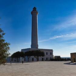 Richtung Süden erreichten wir weitere 40 km später dann den südlichsten Punkt des italienischen Festlandes, den 47 m hohen Leuchtturm Faro di Leuca in Santa Maria di Leuca. Man kann auch hoch, aber angesichts der Warteschlange und deren Geschwindigkeit habe ich hochgerechnet, dass wir wohl bis zu zwei Stunden Wartezeit hätten. Also dankend verzichtet. Auch so ist der Blick auf die Küste und Stadt einfach schön. Dafür die aus dem 18. Jahrhundert stammende, daneben befindliche Basilica di Santa Maria de Finibus Terrae besichtigt. Auch wenn wir, was Kirchenbesichtigungen betrifft, schon unser Limit erreicht hatten.