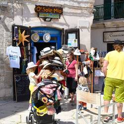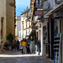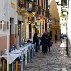 Für uns reicht die Zeit nach dem Ankommen, um einen ausgiebigen Bummel mit Shopping durch die nicht kleine Altstadt zu machen. So kommen mehrere Pack Nudeln und drei Liter Olivenöl in den Rucksack, als ob wir nicht schon genügend Lebensmittel eingekauft hätten. Egal.