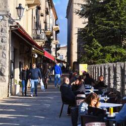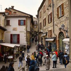 Was bei der ersten Tour auffällt sind eine Vielzahl von Läden, viele mit Chinaschrott, anders kann man es nicht nennen. Dann sahen wir in der Altstadt ein gutes Dutzend Läden mit Säbeln, Schwertern, Fantasyfiguren und ähnlichem. Und mehrere mit unzähligen Waffen, Softairpistolen, Gewehre, Maschinenpistolen, - alle zum Verwechseln ähnlich mit echten Waffen, weiter Macheten, Messer aller Größe, Armbrüste sowie Pfeil und Bogen. Scheint hier nachgefragt zu werden. Wobei die überwiegende Mehrzahl der Menschen auf den Straßen sind Touristen, aus aller Welt. Sollen um die zwei Millionen pro Jahr sein. Derzeit hält es sich aber noch etwas in Grenzen. San Marino lebt zu 60 Prozent von eben jenen Besuchern. Meist Tagestouristen die etwa von Rimini hierherkommen. Morgens und abends hat man dann seine Ruhe. Weiter finden sich zahlreiche Läden mit Lederwaren – vom Preis her aber auch eher Billigware, mit Brillen, Kosmetika, Kleidern, Nippes, dazwischen auch ein paar mit höherpreisigen Designerwaren. Und natürlich zahlreiche Restaurants und Cafés. Rein rechnerisch kommt auf jeden vierten Einwohner ein Geschäft.Read more