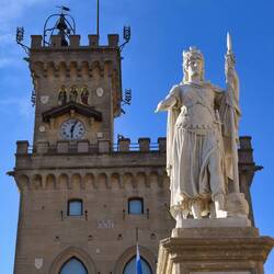 Wir haben Italien verlassen, sind in San Marino. Es soll sich bei dem Zwergstaat um die vermutlich älteste Republik der Welt handeln. So gehe die Gründung auf das Jahr 301 zurück, durch den heiligen Marinus. Hier leben rund 30.000 Einwohnern, mit einer Fläche von 60 Quadratkilometern ist es der fünftkleinste international anerkannte Staat der Welt. Wir sind in der gleichnamigen Hauptstadt San Marino, auch hier spricht man italienisch. San Marino gehört nicht der Europäischen Union an, ist aber Mitglied im Europarat.