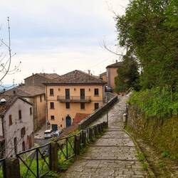 Wir sind unterwegs nach Borgo Maggiore am Fuß des Monte Titano, auf dem die drei Burgen thronen und die Stadt San Marino. Die 300 Höhenmeter kann man zu Fuß überwinden oder mit der Seilbahn. Ja, auch eine solche hat der Kleinstaat. Wir laufen lieber. Sobald man den touristischen Bereich mit den zahllosen Läden verlässt, wird es sehr ruhig, die Vögel zwitschern. Die zahlreichen Waffenläden irritieren uns auch noch am dritten Tag. Inzwischen wissen wir, dass sie nicht nur Softairgewehre und -pistolen im Angebot haben - viele von ihnen die hier frei verkauft werden, sind aufgrund der hohen Schussenergie in Deutschland gar nicht zulässig - sondern auch scharfe Waffen. Zu erwerben mit italienischem oder san-marinesischem Waffenschein. Der offene Umgang und die Liebe zu den Waffen hängt wohl mit dem Jahrhunderte dauerndem Ringen um die Unabhängigkeit zusammen. Versuchten etwa benachbarte Bischöfe immer wieder Steuern einzufordern oder das Gebiet zu erobern. 1247 exkommunizierte Papst Innozenz IV sogar alle San-Marinesen. Zwei Jahre später wurde der Bann beendet, aber in den folgenden 100 Jahren folgten drei weitere Exkommunikationen. Auch Rimini versuchte den Staat mit seinen Truppen zu erobern, dann folgten Stadtvögte eines Bischofs und weitere Nachbarn. Abwehren konnte der kleine Staat das durch politische Interventionen und durch sein hervorragend ausgebildetes Heer. Dennoch wurde der Staat zweimal erobert, durch einen Sohn des Papstes Alexander VI um 1600 - ja, auch ein Papst hatte damals mehrere Kinder und Frauen - und 1739 durch das Heer eines Kardinals. Hielt beides mal aber nicht lange an. Auch Napoleon überstanden sie unbeschadet. Er bewunderte den Kleinstaat, so befohl er seinen Truppen, während der italienischen Kampagne die Grenzen San Marinos zu respektieren. Das faschistische Italien überstand San Marino ebenfalls, nur im zweiten Weltkrieg warfen britische Bomber trotz der Neutralität und der Markierung des Staatsgebietes mittel großer weißer Kreuze mehrere Hundert Bomben über San Marino ab. Später erklärte die britische Regierung, dass der Angriff ungerechtfertigt war. Half den 60 Toten und hunderten Verletzten wenig.