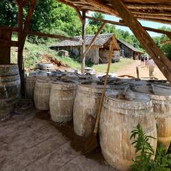 Ein weiteres Gewerk in Guedelon ist der Seiler, der Seile, Taue und Schnüre aus Naturmaterialien herstellt. Er verarbeit Fasern wie Hanf oder Flachs. Zuerst werden aus den Fasern einzelne Fädenもっと詳しく