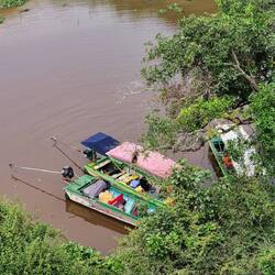 Wir verlassen Vietnam, sind per Boot auf dem Mekong unterwegs, Richtung Kambodscha. Die Fahrdauer bis zur Hauptstadt Phnom Penh wird so um die fünf Stunden dauern. Der Rückblick auf Vietnam zeigtRead more