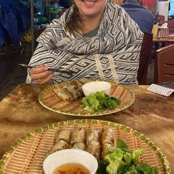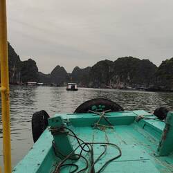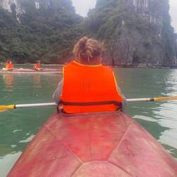 Nous choisissons d'aller à Cat ba qui est une version moins touristique que Ha long. Effectivement on a eu une visite presque privée sur un petit bateau. C'est magnifique, même si le soleil n'est pas au rendez-vous. J'adore la photo du canoë où on a l'impression que je suis un playmonil !