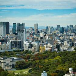 Und diesmal haben wir Glück und sind fast alleine da. Von hier hat man wirklich einen sehr coolen Ausblick auf die Stadt und theoretisch auch auf den Fuji, wenn es nicht so diesig und zugezogen wäre.