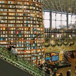 Es ist eine Art Spielothek mit hunderten Spielautomaten, es ist dunkel und es läuft laute Musik und der komplette Laden is gerappelt voll.