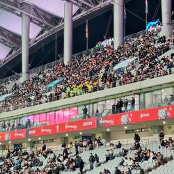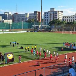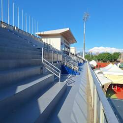 Das Stadion selbst ist nicht spektakulär, hat eine Tribüne mit ein wenig Überdachung, aber nichts außergewöhnliches.