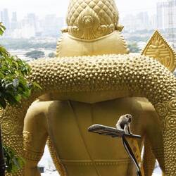 Am nächsten Morgen machten wir uns dann mit der Bahn auf den Weg in Richtung der Batu-Caves, welche vor allem durch den großen goldenen Hinduismus Gott Murugan bekannt sind. Mit viel Respekt durch Berichte anderer wo die Affen teilweise Taschen und andere Sachen klauen sollen, machten wir uns vom Bahnhof auf den Weg in Richtung der Höhlen.