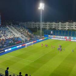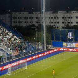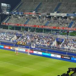 Also rein in die fette Bude. Für mich ein absolutes Rätsel, wofür die hier so ein großes Stadion brauchen, welches am heutigen Tag grade mal mit maximal 300 Leuten, von denen locker 200 Gäste Fans waren, gefüllt war.