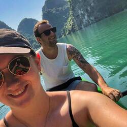 Kurz vor unserem Ziel trafen wir dann tatsächlich noch Lorine & Daniel, welche wir auf der Halong-Bucht-Tour kennengelernt hatten, an einem kleinen Café mit Ausblick.