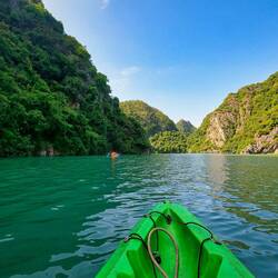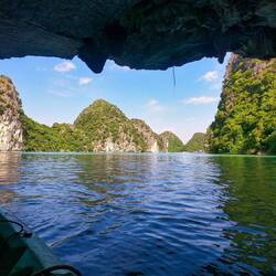 Mit einem kleinen Holzboot, indem maximal 4 Personen plus Steuermann Platz finden, fuhren wir dann durch die sogenannte trockene Halong-Bucht, wofür die Region hier äußerst bekannt ist.