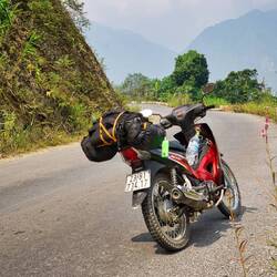 Die beiden haben sich auch kurzfristig für den Loop entschieden und fahren die Strecke andersrum, sodass wir gemeinsam mit ihnen in Du Gia den Abend verbringen und Essen gehen.