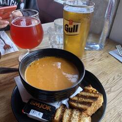 Bissl stärken mit ner sehr leckeren Fischsuppe und nem Bierchen... ok es wurden 2 daraus