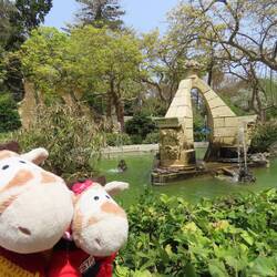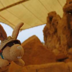 Teile der Plüschie-Reisegruppe am, auf und in der Nähe vom Red Tower.