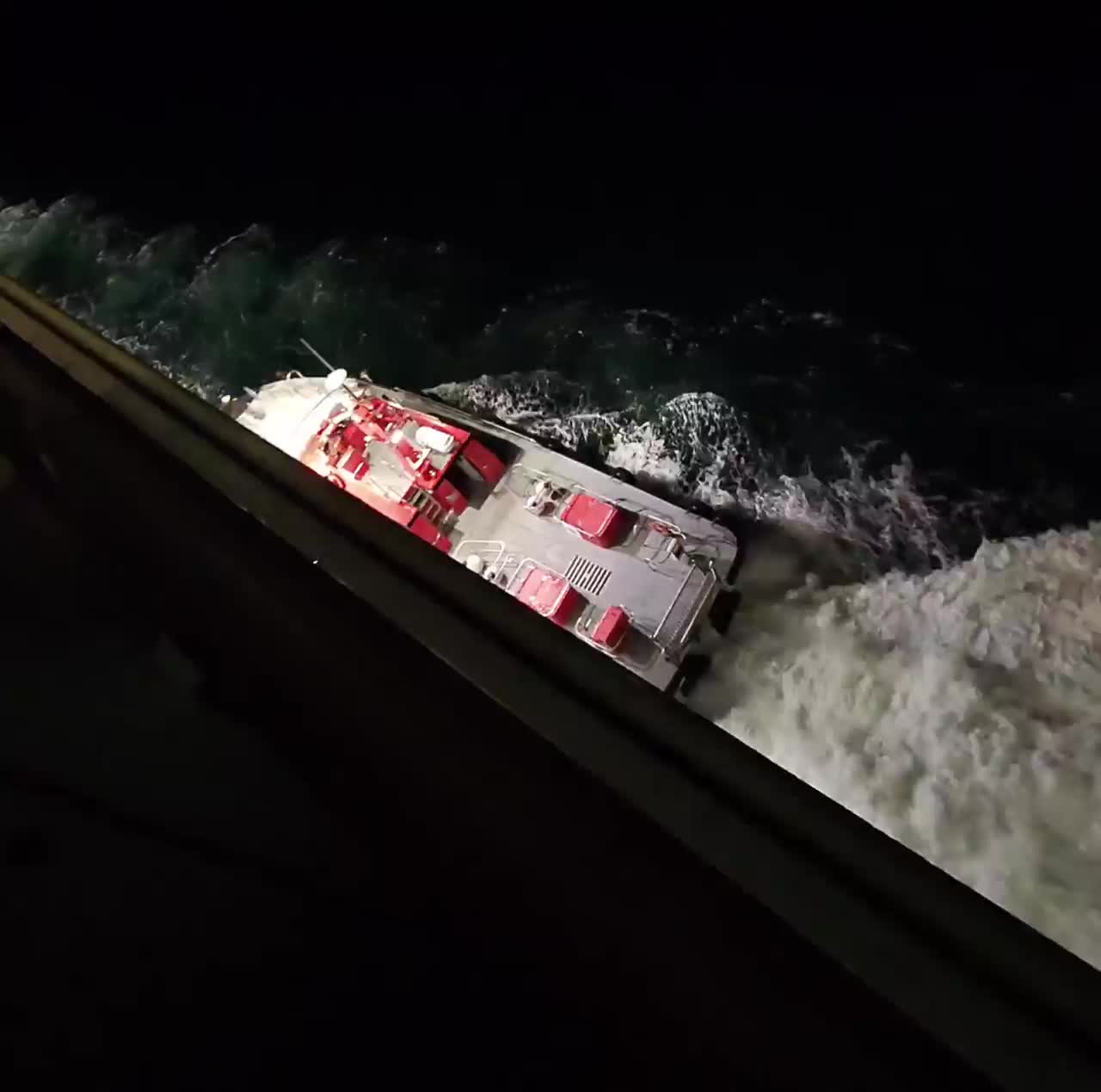We had a pilot on board to help guide the cruise ship through some straits. I filmed him returning to his vessel.
