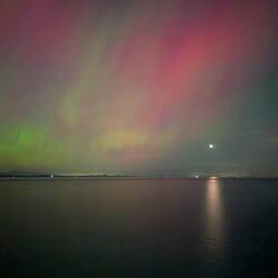 Finally the lights appeared. Very difficult to take a good picture on a moving ship.
