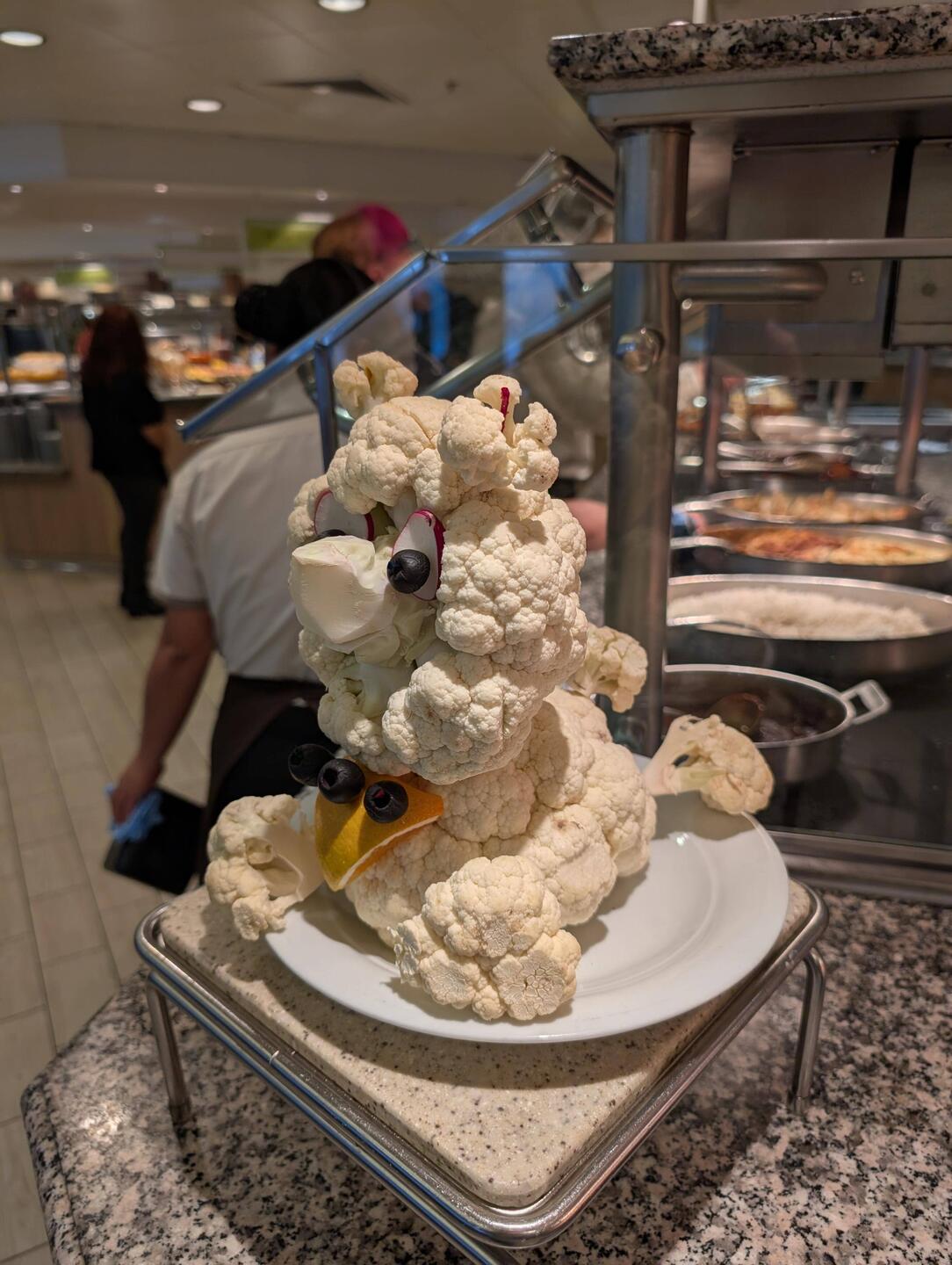 Today's winning vegetable creation is a French poodle. By winner, I mean the one I decided was the best. It's made out of cauliflower of course.