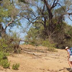 Walked the last 6km's to the pickup. 20min from the pickup point we saw lots of lion tracks and then two lionesses dashed from the riverbank to the safety of the Mopani trees