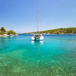 Solta Sesula to Blue Lagoon. Will teach us to go to the over-popular over-marketed blue lagoon and have to move 3 times to avoid being a bumper car with another boat.