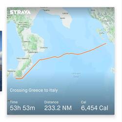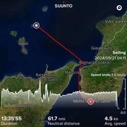 Ionians Lakka to Italy Melito de Porto Salvo. Very bumpy into the swell. 5 hour sailing, remainder engine. Fat lip from a coffee cup trying to sort out coffee cups. Rookie mistake and not my brightestもっと詳しく