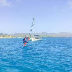 Sicily Mondello to Sardegna Porto Giunco. We expected a little thunderstorm but we're treated to a 30 knot squall and a downpour. Seeing the ominous clouds ahead and above prepared us so fortunatelyもっと詳しく