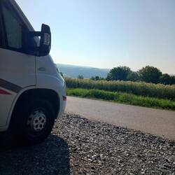 Unser letztes Schlagplatz ist oberhalb vom Rhein. 60m weiter haben wir eine Zeaumgafte Aussicht auf fie Lorely