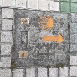 Though we now use GPS or another app (Wise Pilgrim) to navigate, we still rely on the yellow arrows and other markings laid down for pilgrims to follow.