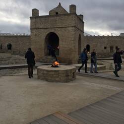 (Zarathustra) die das Feuerelement in Baku so lange ehrten,der Tempel stand direkt auf Gas und es wurden Gasleitungen in jede Zelle gelegt ,bis im Nachbargrundstück ein Bohrturm stand.Der Tempel war wohl völlig fertig weil auch Sowjets jegliche Sekte verboten,wurde jedoch wieder fast vollständig aufgebaut was sich gelohnt hat.Hier hat man aber auch irgendwie das Gefühl,dass jeder zweite irgendwie Polizist,Soldat oder sonstiger Security Typ ist,die sind überall.Geld will geschützt sein...Morgen will ich nach ganz unten in den Absheron Nationalpark,hoffe sehr dass es Wetter technisch besser wird,ewig alles feucht und kalt und möchte ja doch auch noch gerne ein gutes Stück Richtung Norden bis kurz vor die russischen Grenze.