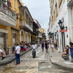Nun bin ich tatsächlichen Kolumbien gelandet,ob das wirklich eine gute Idee war? Es war schon mit der Fähre nicht ganz einfach ,hatte an der Hanni gerade alle Bremsen neu gemacht samt Hydrair und war noch nicht mal beim zusammenbauen und sollte 2 Tage später in Antwerben sein ,das Auto zur Fähre bringen.Es ging oft hin und her und wurde auch immer teurer, aber zum Schluss fuhr die Hanni von Bremerhaven nach Cartagena,und es ging schnell,ich hatte meinen Flug so gebucht dass ich vor dem Auto da bin,so kam ich zwei Tage später an.Hatte alles vorher in die Hanni gepackt und optimistisch wie ich bin dachte ich bekomme sie gleich,am nächsten Morgen zum Hafen gefahren,und natürlich kein Auto,das dauerte auch fast 5 Tage,immer wieder ganz spontane Besuche beim Zoll,Einwanderungsbehörde,Polizei,immer nur einen ZETTEL UNTERSCHREIBEN;ES WAR SEHR ZERMÜRBEND.Konnte mir in der Zeit gut Cartagena anschauen.Cartagena hat eine sehr schöne Altstadt,die Stadt selber ist umgeben von riesigen Mangrovenwälder und auf 5 Inseln gebaut. Es ist zur Zeit keine Saison,weil Regenzeit,es ist richtig warm bisher immer über 30 und es wird Nachts nie unter 25,und über 80% Luftfeuchte,es regnet bisher meist 1 mal für 10 Minuten.Aber egal ob regen oder nicht man ist immer nass ,man braucht nichts zu machen und schwitzt trotzdem.Das Leben ist wie man es sich so vorstellt völlig endschleunigend,man hängt halt irgendwie rum ,sucht schädige Plätze und genießt das Leben,bin zwar erst kurz hier und kann es noch nichts ganz einschätzen,kommt mir aber schon entgegen,an jeder Straßenecke leckere Säfte,Obst und viel leckeres zum probieren,dazu noch super günstig ,ein guter Kaffee auf der Strasse 10 Cent,ein Essen,da wo die einheimischen Essen mit Suppe und Nachtisch unter 3 €.