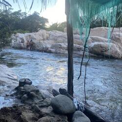 Nach Bogota sind es ca 1000 km, die letzten km bis hier war die Strasse gut,gibt immer nur Chaos an den oben beschriebenen Schikane wo viele anhalten und mit allem möglichen einzudecken,hier jetzt auch mehr Polizei und Militär,hab durch Zufall ein Schild „Rio“ wahrgenommen und hab dann hier einen tollen Platz mit richtig geilem Rio gefunden.Das Wasser angenehm ,vielleicht mit Einbildung auch ein bisschen erfrischend.